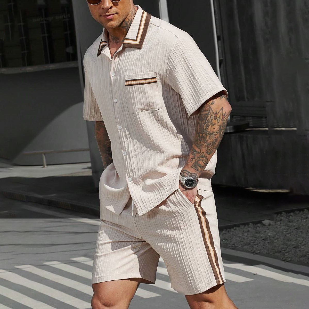 Get cozy and cool with the Aule Trim H Set. Made from soft waffle fabric, this set is perfect for a lazy day or a casual outing. Trust us, this waffle shirt and tee duo will be your new go-to for comfort and style.